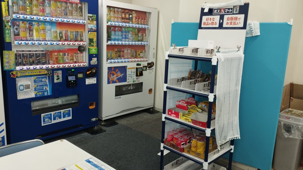 休憩室内では飲み物やお菓子の販売もしています。ぜひご利用下さい!